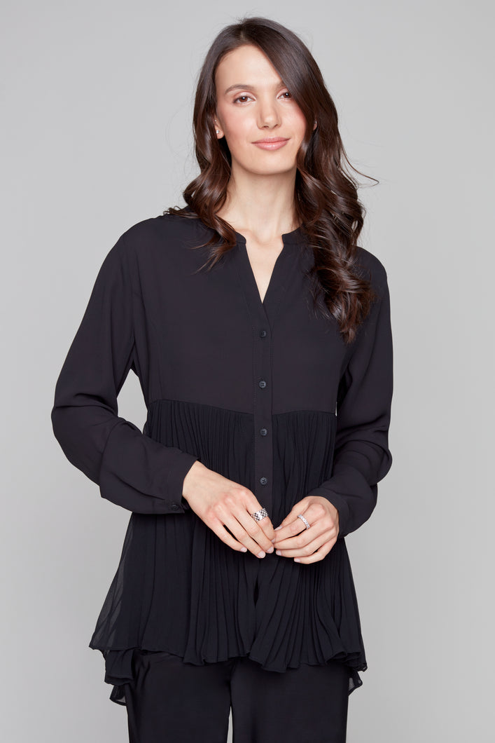 Compli K novelty button-up blouse with zipper detail